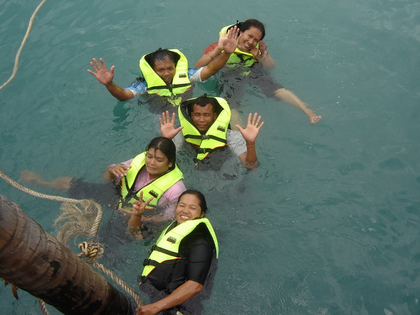 มายก้อดดดดดด....กลัวน้ำนะเนี่ย.....(ว่ายน้ำไม่เป็นอ่ะ) .....นี่ดีนะมีเสื้อชูชีพ ให้ น่ะ...ถ้ามีห่วงยางอีกสัก 2 ชั้น คงจะดี นะ...(