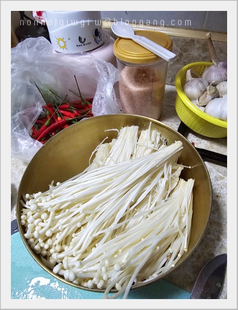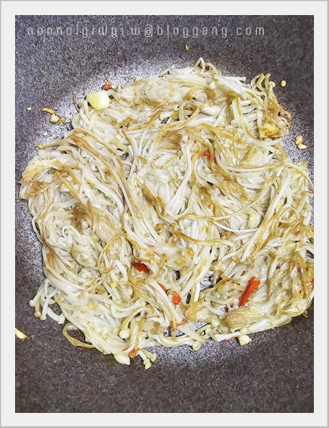 จากนั้นก็ฉีกๆ เห็ดเข็มทองใส่ลงไป ใส่ลงไปเยอะๆ เพราะว่า