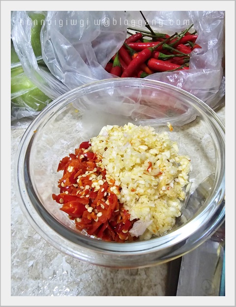 ก็ใส่ พริกและกระเทียมลงไป ใครไม่กินเผ็ดก็ใส่แต่กระเทียม
