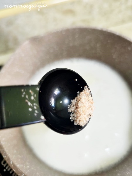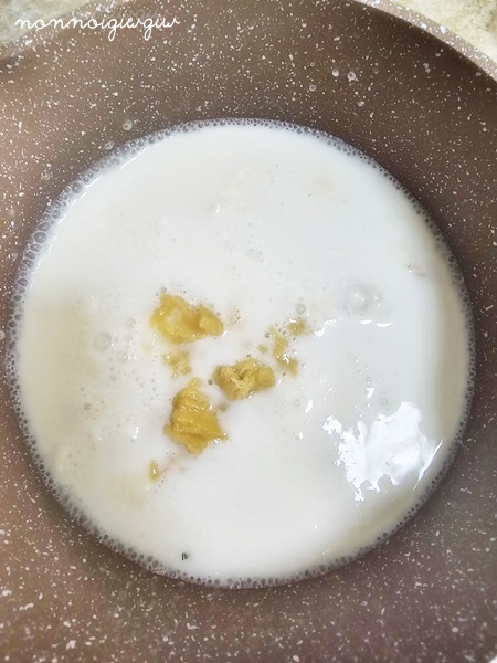 วิธีทำก็ง่ายมาก เริ่มจากตั้งหม้อใส่กะทิ เติมน้ำตาลลงไป