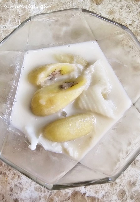 ใส่กล้วยให้แม่ด้วยนะ วันนี้แม่ต้องได้กินกล้วยบวชชีใส่ไข่หวาน