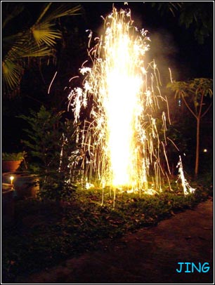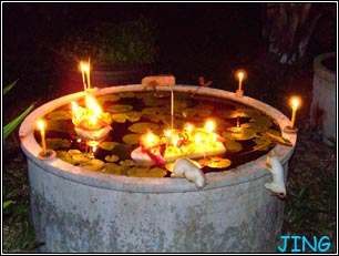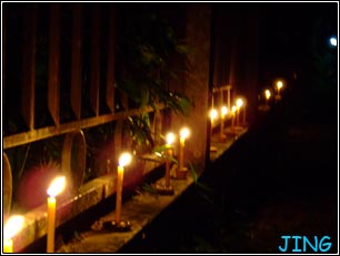 ทางเหนือวันลอยกระทงจะมีการจุดผางประทีป หรือเรียกว่าตามเทียนก็ได้ค่ะ จุดกันตามรั้วเป็นแนวสวยงาม (ไม่สวยเพราะฝีมือคนถ่ายนี่หล่ะ)