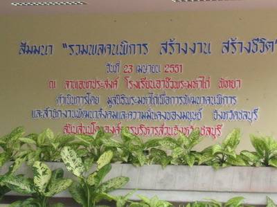 วันที่ ๒๓ ที่ผ่านมา ได้ไปร่วมงานงานสัมมนา รวมพลคนพิการ สร้างงาน สร้างชีวิต ที่ ลานอเนกประสงค์ โรงเรียนอาชีวพระมหาไถ่ พัทยา