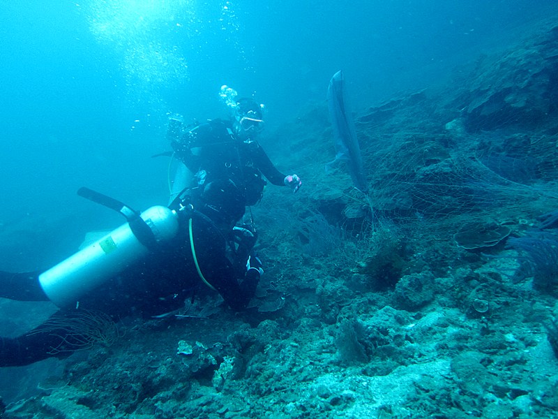 อวนที่เหลือจากคราวก่อน ยังพันอยู่รอบเกาะ ไดฟ์แรก ลงด้านเหนือก่อน ไดฟ์สอง ลงด้านใต้ของเกาะ
