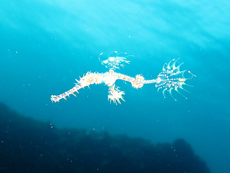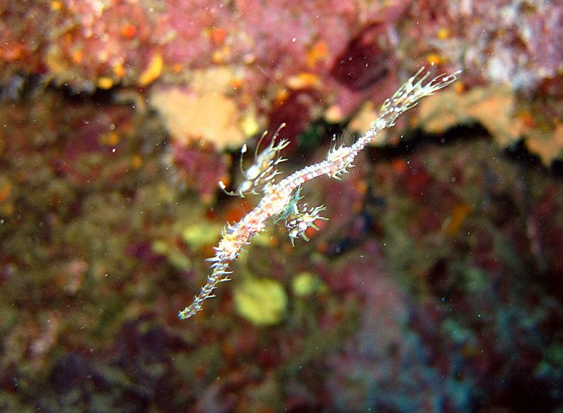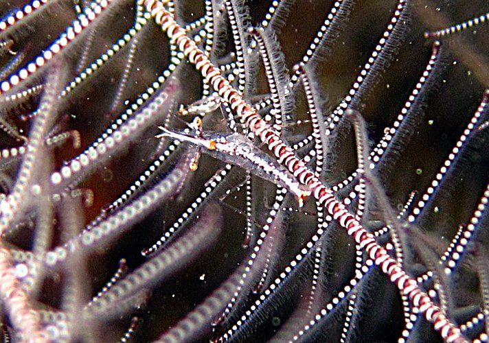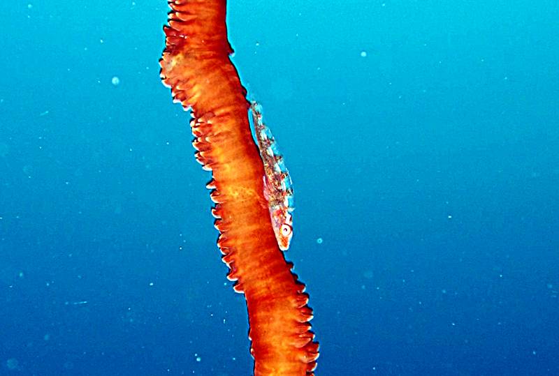 ลูก ghost pipefish ล่องลอยอยู่กลางน้ำ น่ากลัวถูกจับกินเป็นอย่างยิ่ง
