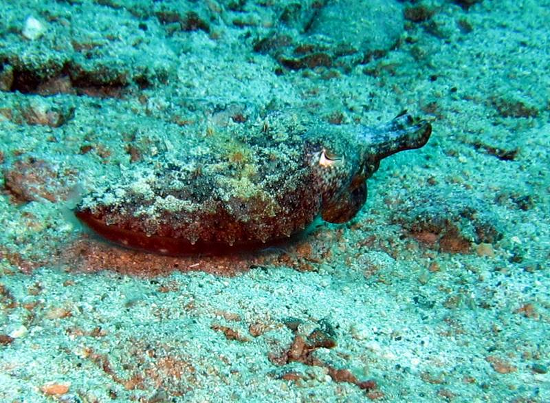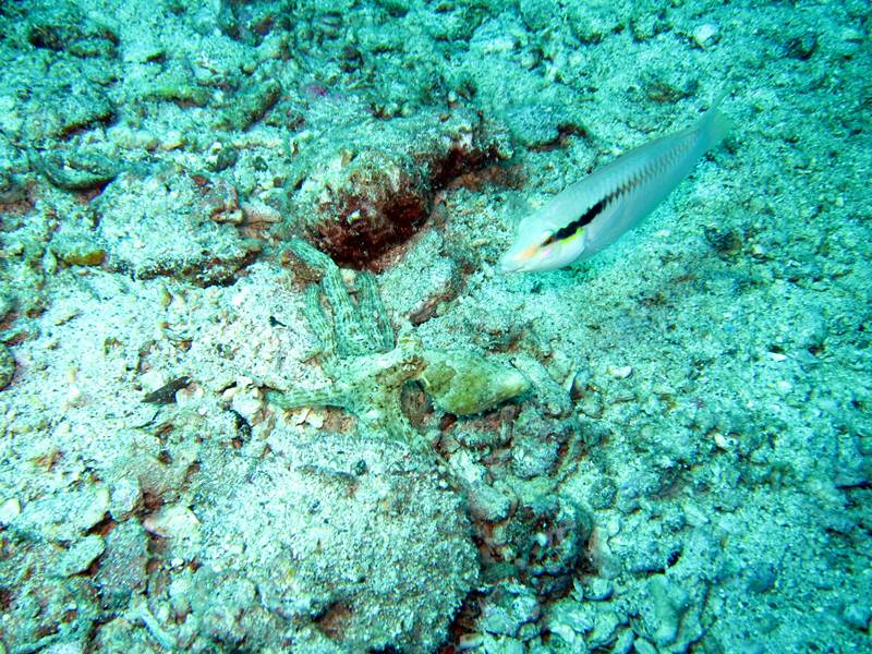 ลูกหมึก octopus พยายามพรางตัวให้เข้ากับพื้นทะเล