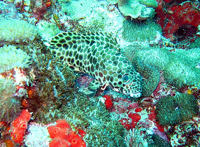 ปลากะรังจุดฟ้า แอบอยู่ใต้ดาวขนนก