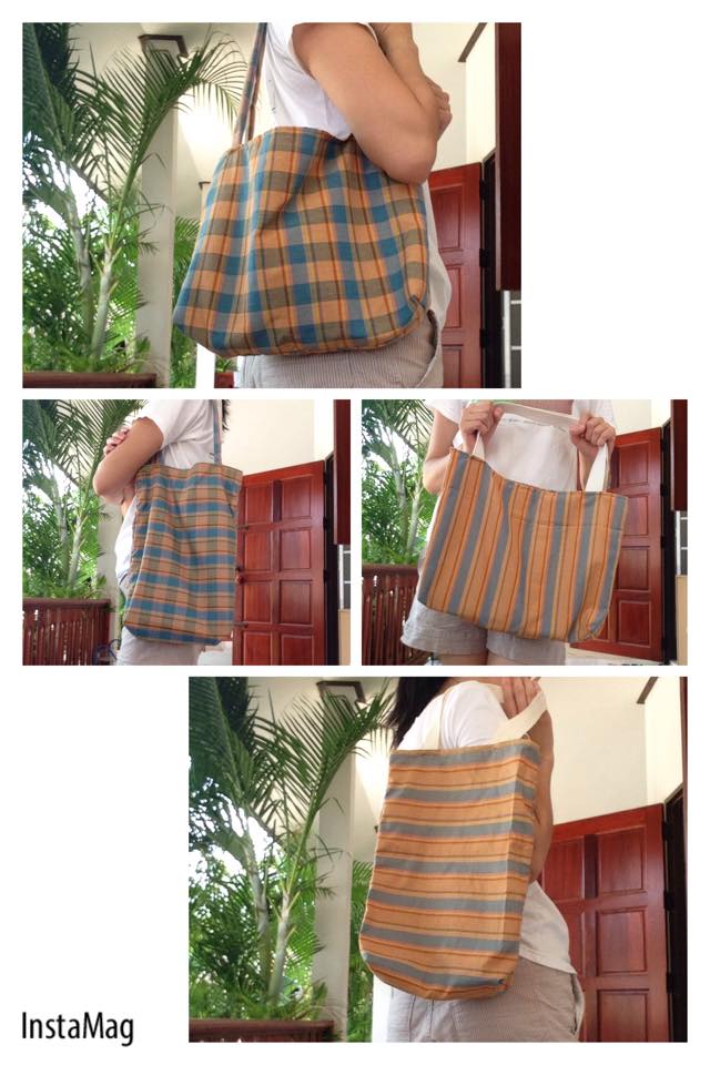 รู้สึกว่าตัวเองจะชอบเย็บกระเป๋าผ้ามากเป็นพิเศษ เพราะมันง่ายและเร็วดี แล้วใช้งานได้ทันทีด้วย เอาเศษผ้าที่เหลือจากการตัดเสื้อมาตัดแบบไม่ต้องวัดขนาด ตัดไว้หลายๆ แบบ สนุกดี อินเทรนด์เข้ากับการลดการใช้ถุงพลาสติก