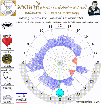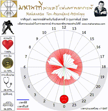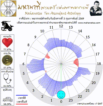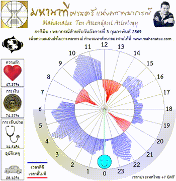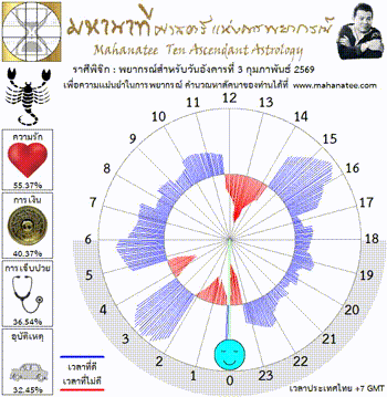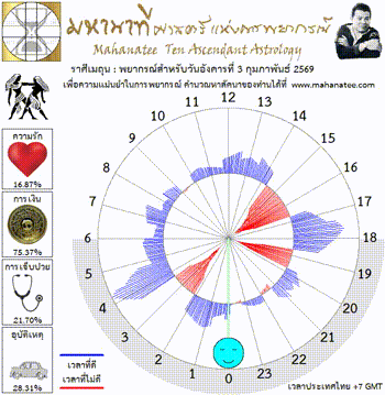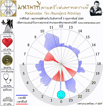 แผนภูมิและพยากรณ์ 12 ราศี สำหรับ วันอังคารที่ 3 กุมภาพันธ์ 2569 เลื่อนไปหาราศีที่ต้องการ และเปิดเสียงด้วย ** หมายเหตุ คลิปจะเล่นได้ 3 วันก่อนวันที่พยากรณ์