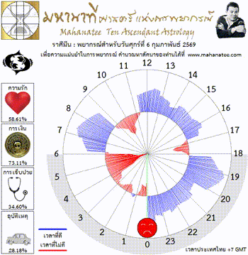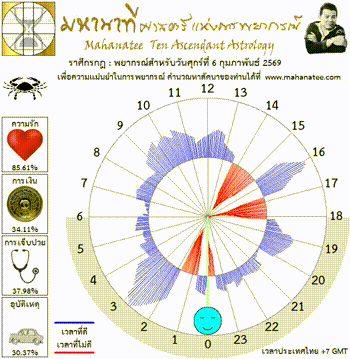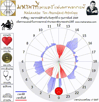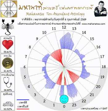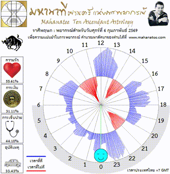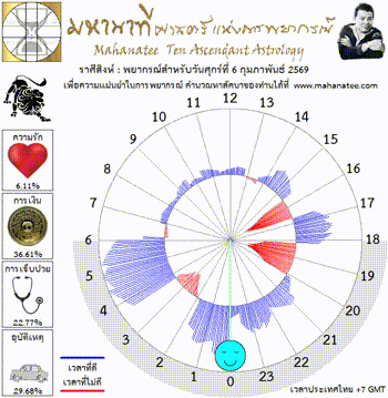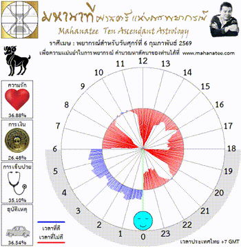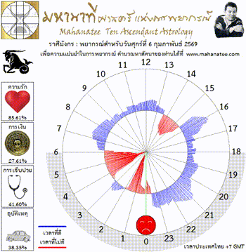 แผนภูมิและพยากรณ์ 12 ราศี สำหรับ วันศุกร์ที่ 6 กุมภาพันธ์ 2569 เลื่อนไปหาราศีที่ต้องการ และเปิดเสียงด้วย ** หมายเหตุ คลิปจะเล่นได้ 3 วันก่อนวันที่พยากรณ์