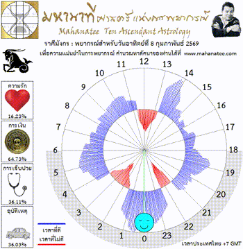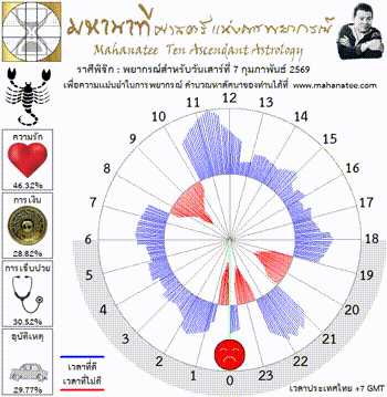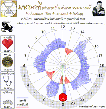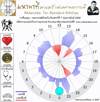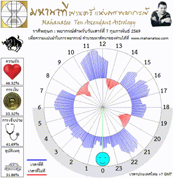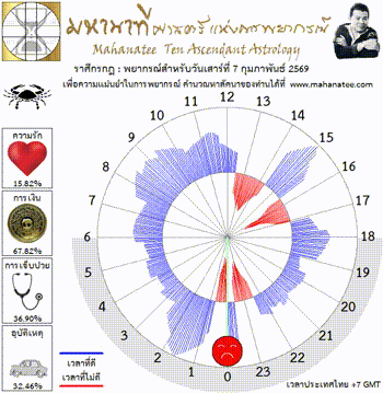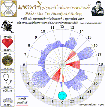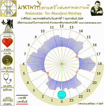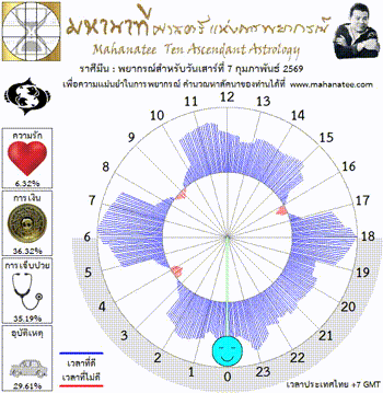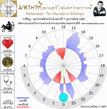 แผนภูมิและพยากรณ์ 12 ราศี สำหรับ วันเสาร์ที่ 7 กุมภาพันธ์ 2569 เลื่อนไปหาราศีที่ต้องการ และเปิดเสียงด้วย ** หมายเหตุ คลิปจะเล่นได้ 3 วันก่อนวันที่พยากรณ์