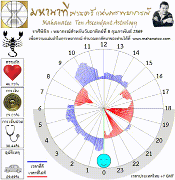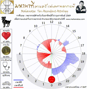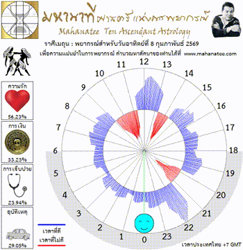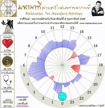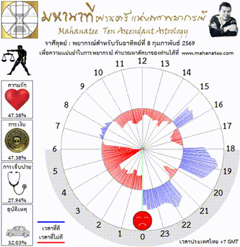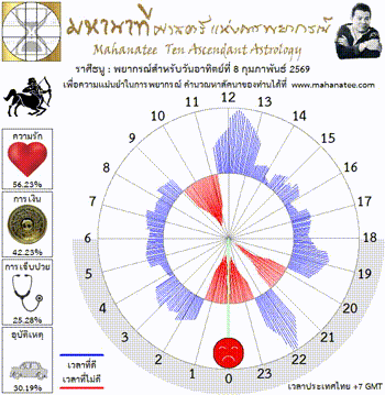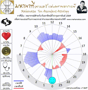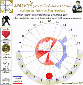 แผนภูมิและพยากรณ์ 12 ราศี สำหรับ วันอาทิตย์ที่ 8 กุมภาพันธ์ 2569 เลื่อนไปหาราศีที่ต้องการ และเปิดเสียงด้วย ** หมายเหตุ คลิปจะเล่นได้ 3 วันก่อนวันที่พยากรณ์