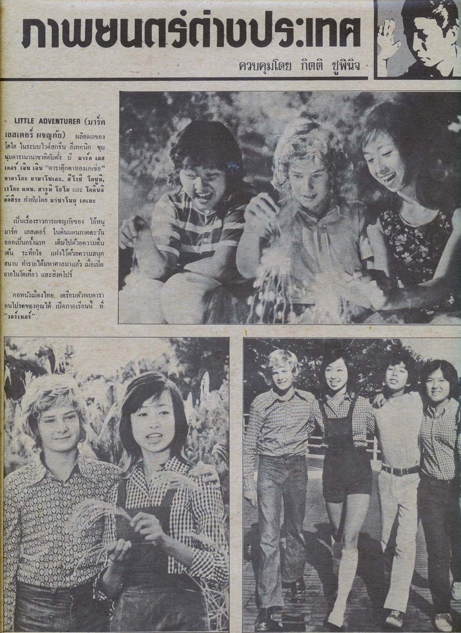 คอลัมน์ ภาพยนต์ต่างประเทศ ควบคุมโดย กิตติ ชูพินิจ กิตติ ชูพินิจ บุตรชายของ ครูมาลัย ชูพินิจ นักเขียนระดับบรมครูของเมืองไทย เจ้าของบทประพันธ์เรื่อง "ล่องไพร" ในนามปากกา น้อยอินทนนท์ "ชั่วฟ้าดินสลาย" ในนามปากกา เรียมเอง และเรื่องอื่นๆอีกหลายร้อยเรื่อง กิตติ เริ่มชีวิตการทำหนังสือตั้งแต่ยังเป็นนิสิตคณะรัฐศาสตร์ จุฬาลงกรณ์มหาวิทยาลัย เข้าสู่วงการหนังสือพิมพ์ตั้งแต่ ปี 2505 เคยเป็นหัวหน้าข่าวการเมือง สังคม ต่างประเทศ บันเทิง ผู้ช่วยหัวหน้ากองบรรณาธิการ และหัวหน้ากองบรรณาธิการ หนังสือพิมพ์หลายฉบับ เริ่มตั้งแต่พิมพ์ ไทย สยามนิกร สยาม เสียงปวงชน เดลินิวส์ เดลิไทม์ แนวหน้า หลักไท ภาพยนต์ต่างประเทศในพุทธศักราช ๒๕๑๖ มีหนังจากฮอลีวู๊ดและค่ายต่างๆอีกหลายประเทศ แนวของหนังนั้นเหมือนในปัจจุบันนี้ คือมีทุกแนว เรื่องแรกที่นำเสนอนั้นเป็นหนังวัยรุ่น Little Adventure จากค่ายโตโฮของญี่ปุ่น นำแสดงโดย Mark Lester มาร์ค เลสเตอร์ พระเอกวัยรุ่นที่โด่งดังทั่วโลกจากภาพยนต์เรื่อง Melody (1971 ๒๕๑๔) เมโลดี้ เป็นหนังในแนว Puppy Love หรือความรักในวัยใสของเด็กวัยรุ่น ซึ่งฝรั่งเปรียบเหมือนความรักของลูกหมา ซึ่งในประเทศไทยภาพยนต์เรื่องนี้ถือว่าดังถล่มทลาย วัยรุ่นแห่ไปดูกันแน่นขนัด อีกทั้งเพลงประกอบภาพยนต์จากฝีมือของวง Bee Gees ซึ่งเป็นวงดนตรีที่คนไทยรู้จักกันดีอยู่แล้วในตอนนั้น ยิ่งทำให้ภาพยนต์เรื่องนี้ดังยิ่งขึ้นไปอีก บริษัทโตโฮของญี่ปุ่นจึงรีบฉวยโอกาสดึงพระเอกวัยรุ่นคนนี้ไปแสดงในหนังแนวเดียวกัน แต่ใช้ดาราเด็กชาวญี่ปุ่นมาร่วมแสดงด้วย ซึ่ง ไม่ได้ประสบความสำเร็จเท่าที่หวัง