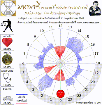 แผนภูมิและพยากรณ์ 12 ราศี สำหรับ วันอังคารที่ 11 พฤศจิกายน 2568