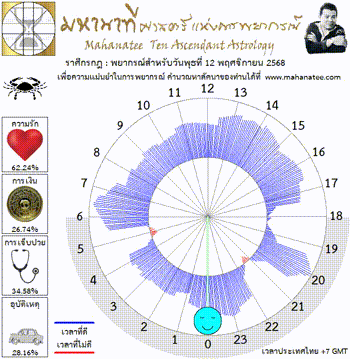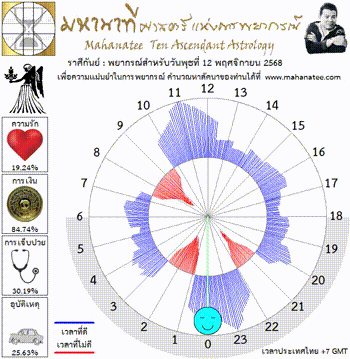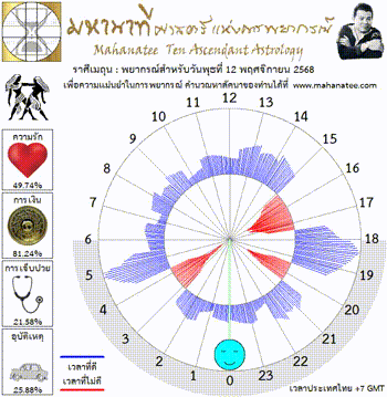 แผนภูมิและพยากรณ์ 12 ราศี สำหรับ วันพุธที่ 12 พฤศจิกายน 2568