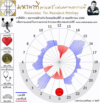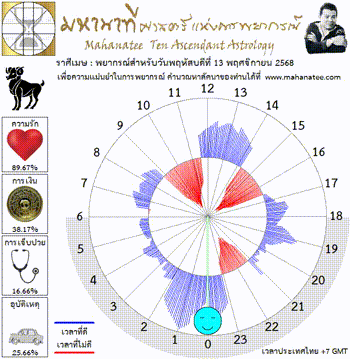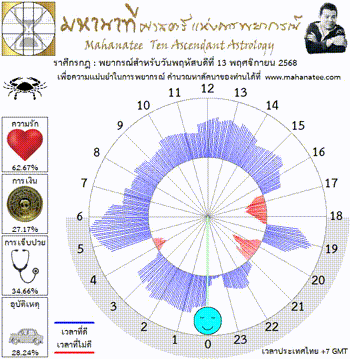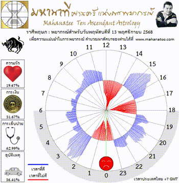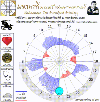 แผนภูมิและพยากรณ์ 12 ราศี สำหรับ วันพฤหัสบดีที่ 13 พฤศจิกายน 2568