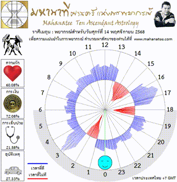 แผนภูมิและพยากรณ์ 12 ราศี สำหรับ วันศุกร์ที่ 14 พฤศจิกายน 2568