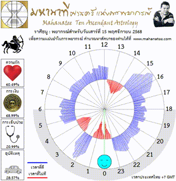 แผนภูมิและพยากรณ์ 12 ราศี สำหรับ วันเสาร์ที่ 15 พฤศจิกายน 2568