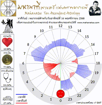 แผนภูมิและพยากรณ์ 12 ราศี สำหรับ วันอาทิตย์ที่ 16 พฤศจิกายน 2568