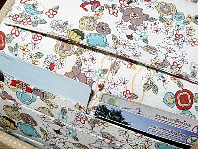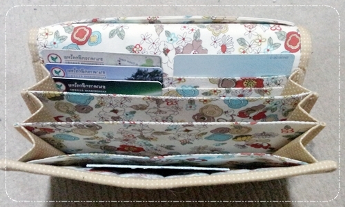 ขนาด (กว้าง*สูง*หนา) 20*11.5*2-3 ซม. ทำจากผ้า cotton ช่องใส่บัตร 6 ช่อง ช่องใส่ใบเสร็จ 2 ช่อง (อยู่ที่ตัวกระเป๋า 1 ช่อง ที่ฝากระเป๋าอีก 1 ช่อง) ช่องแบงค์ 3 ช่อง (สามารถใส่สมุดธนาคารได้ค่ะ) ช่องซิป 1 ช่อง