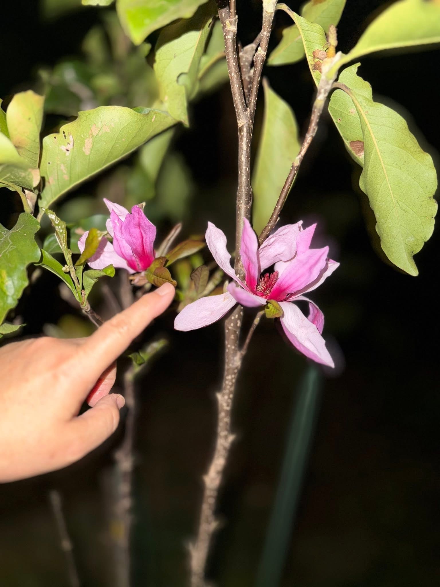 จำปีซูซาน ในสวนสามเสือ ให้ดอกเก่ง ดอกสีชมพูดอกใหญ่ประมาณฝ่ามือ วันนี้เพิ่งจะรู้ว่า นางไม่ใช่ จำปีแดง ถึงว่าจำปีแดงอีกต้นไม่ให้ดอกมานานมาก คิดว่าจะย้ายมาอยู่บนสวนด้วยกันแต่ก็คงขนไม่ไหวต้นใหญ่เกิน จำปีซูซานต้นนี้ประสบความสำเร็จมาก ให้ดอกมาเป็นระยะไม่เคยขาด โตเร็ว ใบใหญ่ดอกใหญ่ขึ้นเรื่อยๆ จัดการทดลองเสียบยอด ติดตาไปกับต้นจำปาในสวนไว้หลายต้นว่าจะเป็นยังไงบ้าง ข้อดี จำปีซูซานนี้ดอกบานอยู่ สองสามวัน นานมากกว่าตระกูลยี่หุบดอกใหญ่ หรือ มณฑา มนต์จำปาที่บานแค่วันเดียว ส่วนความหอม จำปีซูซานไม่ได้กลิ่นอะไรสักอย่าง ชอบกลิ่นหอมของจำปี กับ ตระกูลยี่หุบ มณฑา หอมมากกว่าหอมตลบอบอวล ภาพถ่ายครั้งก่อนที่พบดอกของเธอ