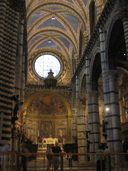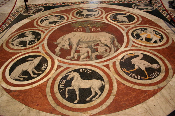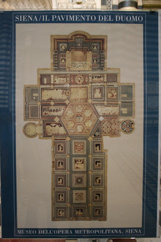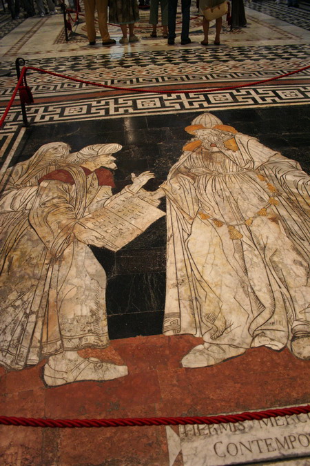 เค้าจะกั้นเชือกไว้ไม่ให้เดินย่ำลงบนรูปค่ะ เพื่อเป็นการอนุรักษ์ ส่วนถ้าใครอยากชม inlaid marble floor หรือ ที่เค้าเรียกว่า pavimento ... เค้าเปิดแค่ปีละครั้งเดียวนะคะ ประมาณกลางเดือนกันยายนค่ะ ส่วนช่วงเวลาอื่น ถ้าจำไม่ผิดรู้สึกว่าเค้าจะเอาผ้ามาปิดไว้เพื่อป้องกันภาพค่ะ