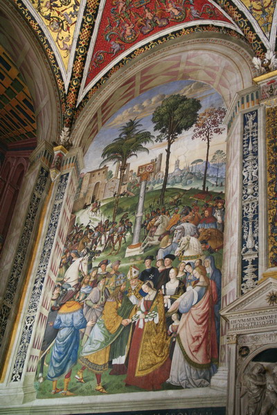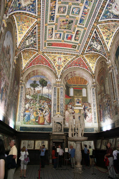 นอกจากนี้ยังมี Libreria Piccolomini สร้างเพื่อเก็บรักษาหนังสือและเอกสารส่วนตัวของพระสันตปาปา ติอุสที่ 2 ปินตูริคคิโอวาดภาพเรื่องราวของท่านไว้บนผนัง กลางห้องมีประติมากรรม Three graces ที่ศิลปินชาวโรมันทำลอกเลียนงานของ ศิลปินชาวกรีกค่ะ ดูแล้ว สวยงามอลังมากกก ค่ะ เข้าไปยัง อึ้งเลยค่ะ