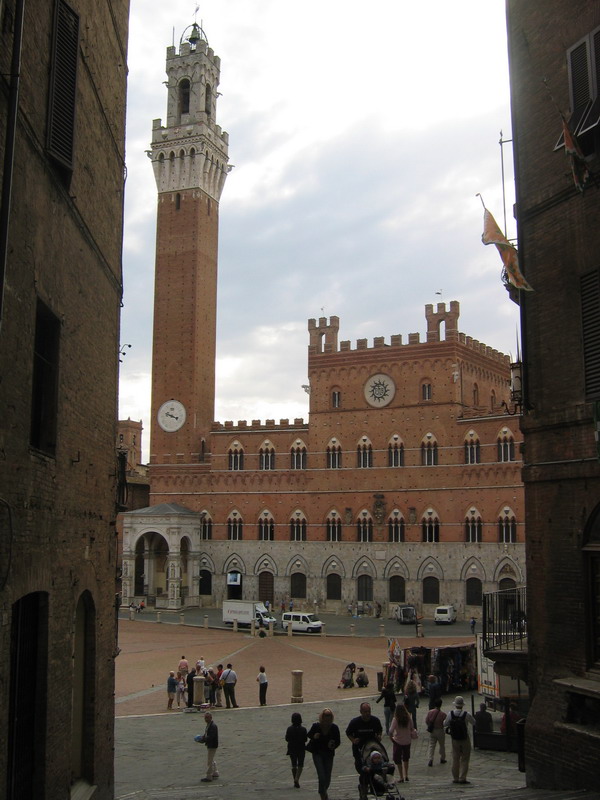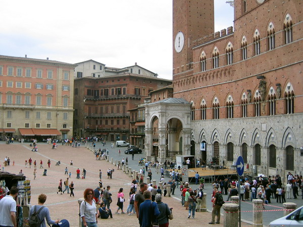 ออกจาก Duomo ก็ไป Piazza del campo เป็นลานกว้างๆ เค้าว่าถนนทุกสายใน siena จะมุ่งตรงมาที่จตุรัสนี้ซึ่งเป็นจตุรัสใหญ่ใจกลางเมือง ซึ่งชาว siena มักจะพูดเป็นเสียงเดียวกันว่าจตุรัสนี้มีรูปร่างเหมือนเสื้อคลุมของพระแม่มาเรีย ผู้เป็นนักบุญประจำเมือง siena ร่วมกับ St Catherine ค่ะ