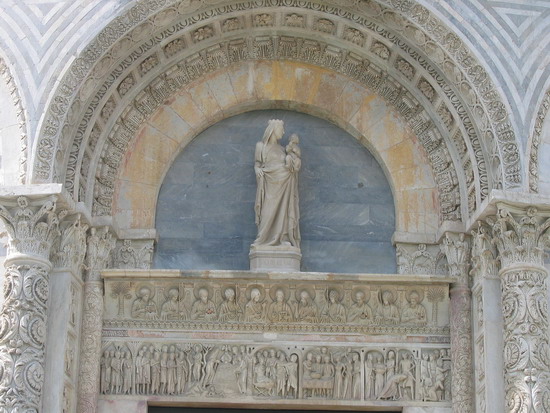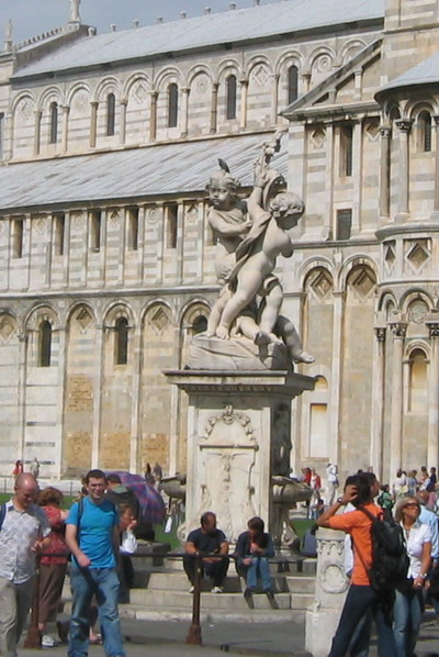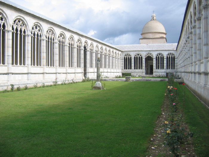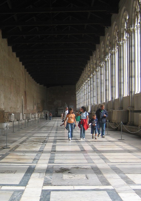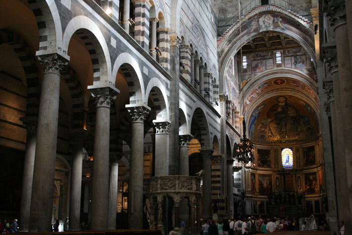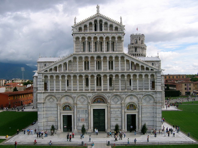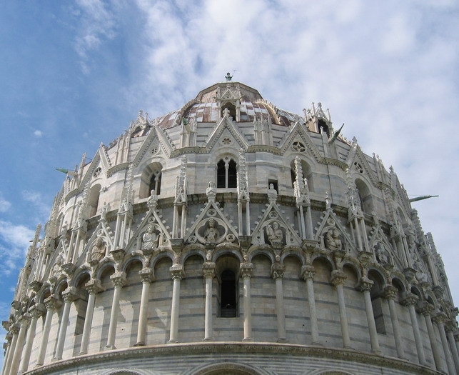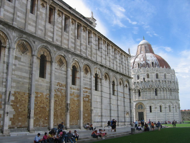 Duomo and Baptistry ของ Pisa มีรูปร่างแปลกตาเพราะมีอิทธิพลของอิสลามเจือปน จากการที่ pisa เคยติดต่อค้าขายกับพวกแขกมัวร์ใน Spain และ Africa เหนือมาก่อน ตัวอาคารด้านหน้าสร้างด้วยหินอ่อน ตกแต่งด้วยลวดลายแบบอาหรับ ค่ะ