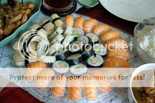เนื่องจากความชอบของคุณซะมี และตัวเราเอง เลยทำให้ซูชิเป็นอาหารที่ทำทานบ่อยมากๆๆๆ เลยทำให้เราต้องฝึกทำไปเรื่อยๆ จน(คิดว่า) เก่งขึ้น โดยเฉพาะการแล่ปลาแซลม่อน อิ อิ อิ ช่วงนี้แซลม่อนถูกซะด้วย