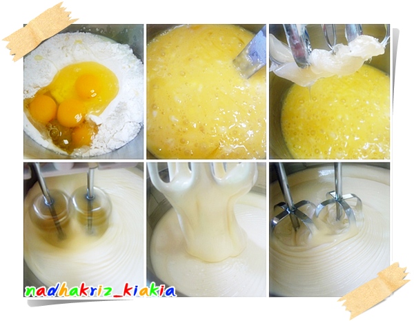 ใส่ทุกอย่างลงไปเลยครับในโถ ผมเอาอุปกรณ์ทุกอย่างไปใส่ช่องฟรีสก่อนครับ แล้วก้ค่อยมาตี แถมเปิดแอร์ตีด้วย 55555 กลัวมันตีไม่ขึ้น เวลาตีผมตีกลางครับ ค่อยๆสังเกตเอาว่าเริ่มมีรอยตะกร้อ แล้วข้นเรื่อยๆ แล้วก็เช็ค พยายามดูเวลาทุก 1-2 นาทีด้วยนะครับ เพราะพี่ๆน้องๆในก้นครัวว่ากันว่า ห้ามตีเกิน 5 นาทีไม่งั้นมันจะแตกตัวครับ ก็จะได้ข้นๆประมาณนี้ครับ ดีใจที่ตีไม่เสีย หุหุ