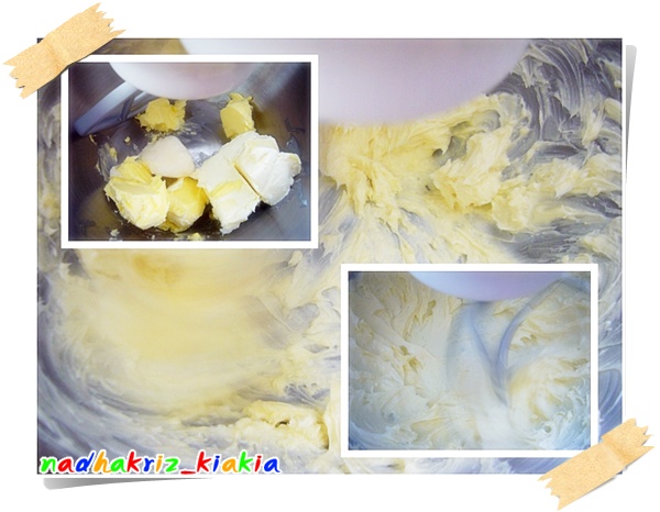 2. เอาเนยสด + ครีมชีส + เกลือ + EC 25K ตีให้เขากันครับ ตีกันจนส่วนผสมเข้ากันดี แล้วก็นุ่มนะครับ ตามรูปเลย
