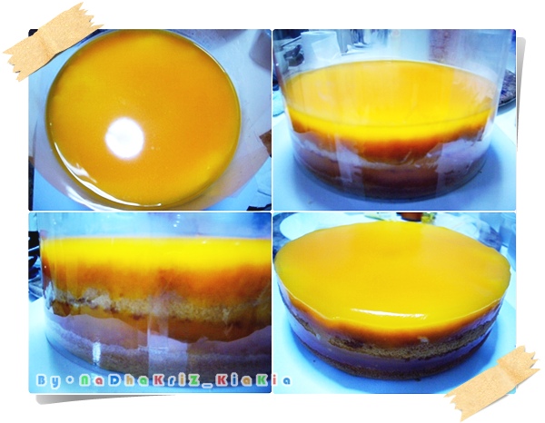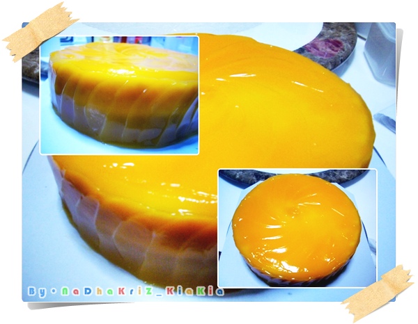 ผมยังคงใช้แผ่นฟิล์มพันรอบนะครับ ลองทำแบบราดเองแล้ว ไม่พันแผ่นฟิล์ม ไม่ไหวครับ ไม่เทพขนาดนั้น ก็เลยต้องอาศัยตัวช่วย สังเกตไหมครับ หน้ามันเด้งมาก สวยงามเนียนเชียว แต่อย่างที่บอกข้างต้น ผมพยายามเอาผลไม้มาแต่ง แต่มันเละไม่เป็นท่า ความเด้งก็เลยหายไปทันนี้ ก็เลยพยายามเอามาแก้ไขให้มันดูดีขึ้นเท่าที่จะทำได้ครับ โดยการปาดลายๆ แบบที่เห็นนั่นแหละครับ