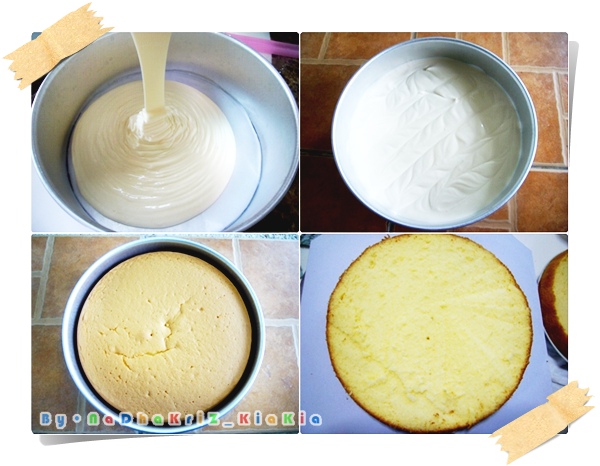 เทใส่พิมพ์เลยครับ ส่วนผสมจะข้นแต่ไม่มากเหมือนตอนแรก เวลาเทมันจะเป็นแบบในรูปน่ะครับ เขาเรียกอะไรนะ Ribbon Stage ไม่รู้เรียกถูกไหม จากนั้นยัดเข้าเตาอบเลย แต่อย่าลืมเตาวอร์มไว้ก่อนนะครับ ผมอบไฟล่างอย่างเดียวเลย ไฟ 180 องศาเซลเซียส อบประมาณ 32 - 34 นาที ก็สุกแล้วครับ อันนี้ขนาด 3 ปอนด์นะครับ จากนั้นเอาออกมาจากเตา กระแทกแรงๆกับพื้นเลยครับ ให้โครงสร้างเค้กอยู่ตัวอ่ะครับ ไม่งั้นเด๋วมียุบ แล้วก็เอาออกจากพิมพ์เลยครับผม