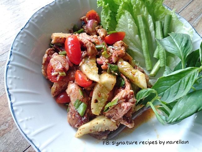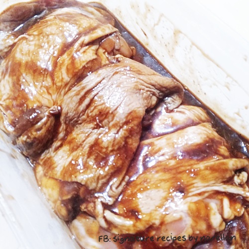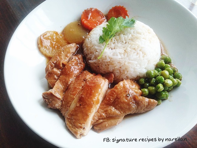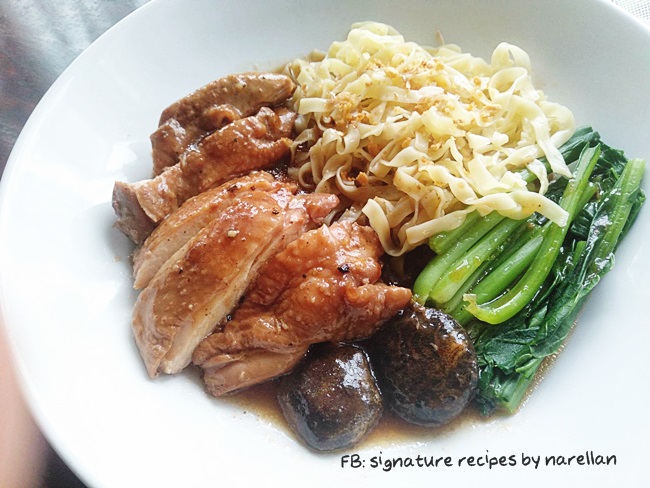 โจทย์เดือนนี้ของน้องต๋า Sweet_pills ชวนเพื่อน ๆ มาทำอาหารที่ทำครั้งเดียวแล้วกินได้มากกว่า 1 มื้อไม่เบื่อ เพื่อลดการออกไปจับจ่าย ลดการสั่งดิลิเวอรี่ เป็นการประหยัดทั้งเงินและเวลา ปลอดภัย ไม่เสี่ยงโรค ประมาณว่ายิ่งอุ่นยิ่งอร่อยกับโจทย์ "Eat Me More" ****************************** อาหารประเภทยิ่งอุ่นซ้ำยิ่งอร่อยที่ชอบและทำบ่อยมีหลายอย่างค่ะ อย่างจับฉ่าย ไข่พะโล้ แกงส้ม คั่วกลิ้ง สตู แกงกะหรี่ บลาๆ ก็ทำลงบล็อกไปหมดแล้ว งั้นเอาสูตรหมักไก่มานำเสนอแล้วกันเนาะ เป็นสูตรหมักไก่ทำขายด้วยทำกินเองด้วย คือเราจะหมักไก่ประมาณอาทิตย์ละครั้ง ไก่หมักนี้เอาไว้ทำอาหารได้หลากหลายเมนู ไก่ที่หมักเก็บในช่องธรรมดาที่เย็นสุดได้ 2-3 วัน พอดีที่ร้านมีตู้เย็น ช่องที่คุมอุณหภูมิประมาณ -1 องศาก็เลยเก็บได้เป็นอาทิตย์ แต่ถ้าตู้เย็นธรรมดา เก็บช่องเย็นสุดไม่ควรเกิน 2-3 วัน ถ้าหลังจากนั้นแผ่ไก่และแยกใส่ถุงละชิ้น พร้อมซอสหมักซีลเก็บเข้าฟรีส เคยทดลองเก็บในฟรีสประมาณ 1 เดือน รสชาติและกลิ่นยังเหมือนเดิม ถ้าเกินกว่านั้นไม่แน่ใจ เวลาจะนำมาปรุงอาหารก็เอาออกมาวางทิ้งไว้ให้ละลายใช้เวลาไม่นาน หรือจะแช่ถุงไก่ในน้ำเพื่อช่วยละลายให้เร็วขึ้น(ถ้าไม่ได้ซีลมิดระวังน้ำเข้า) หมักไก่ทีเดียวเอามาทำอาหารได้หลากหลาย ก็น่าจะเข้ากับโจทย์นี้ได้เนาะ โจทย์บอกยิ่งอุ่นยิ่งอร่อย อาจจะไม่ตรงเป๊ะ แต่ก็ eat me more กินได้มากกว่า 1 มื้อไม่เบื่อแน่นอน ^^ ใช้ไก่ส่วนสะโพก เลาะกระดูกออกเหลือแต่เนื้อกับหนัง เลือกไก่ชิ้นใหญ่เพราะถ้าไก่ชิ้นเล็กอบออกมาจะหดเล็กไปไม่น่ากิน ส่วนตัวจะชอบไก่ส่วนนี้เพราะเนื้อไก่ที่ได้จะมีความฉ่ำ เนื้อไม่แห้งกระด้าง ซอสสำหรับหมัก สำหรับเนื้อสัตว์ประมาณ 1000 กรัม ใช้หมักกับเนื้อสัตว์ชนิดอื่นได้ ควรหมักข้ามคืนก่อนนำมาปรุง ช้อนโต๊ะที่ใช้เป็นช้อนสำหรับกินข้าวขนาดมาตรฐานนะคะ สัดส่วนซอสหมักให้เป็นไกด์ไลน์ ปรับส่วนผสมกับรสตามที่ชอบได้เลยค่ะ * 3 เกลอ(รากผักชีกระเทียมพริกไทย) 3 ช้อนโต๊ะพูน ไก่หมักสูตรนี้จะหอมเด่นที่ 3 เกลอ * น้ำมันหอย 10 ช้อนโต๊ะ * ซีอิ๊วขาว 4 ช้อนโต๊ะ * ซีอิ๊วหวาน 1-2 ช้อนโต๊ะ (ใส่ให้ไก่สีสวย) * น้ำตาลทราย 1-2 ช้อนโต๊ะ (สำหรับตัดรสตามชอบ) * ผงพะโล้ 1/2 ช้อนโต๊ะ * น้ำมันงา 1 ช้อนโต๊ะ * ผสมทุกอย่างคนให้เข้ากันก่อนนำไก่ลงไปคลุกและนวดให้ซอสหมักทั่วถึง อบไก่แบบใช้กระทะมีฝาปิด * ใส่น้ำมันในกระทะประมาณ 1/2 ช้อนโต๊ะ เนยสดประมาณ 1/2 ช้อนโต๊ะ คนให้ละลายเข้ากัน * จัดระเบียบไก่และหนังให้แผ่เป็นแผ่น นำด้านหนังลงจี่กับกระทะก่อน (ซอสหมักไม่ต้อง) * ใช้ตะหลิวลากไก่วนไป ให้หนังไก่สีสวยสม่