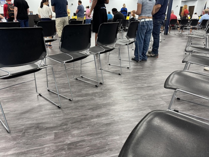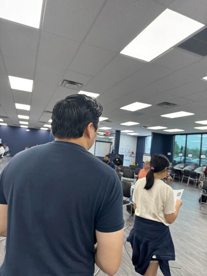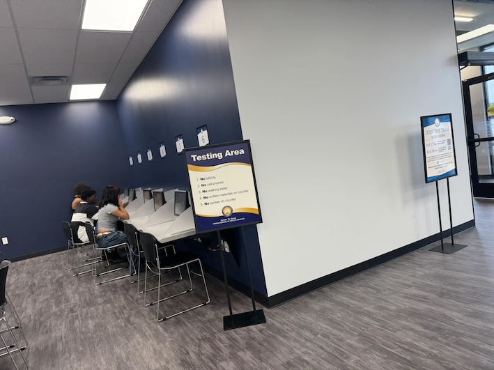 เรามาก่อนเวลานิดหน่อย แถวก็เริ่มมีคนมารอก่อนแล้ว แต่คนก็ไม่มาก พอถึงเวลาเข้าจะได้รับบัตรและรอเรียก ไปลงทะเบียนเพื่อไปสอบ สถานที่ใหม่ เจ้าหน้าที่ทำงานเยอะมาก ทำให้ทุกอย่างผ่านไปรวดเร็ว