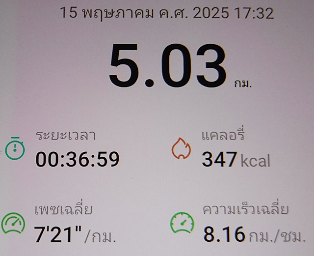 - วิ่งข้างบ้าน 10,11,12,13,15 พ.ย. 2568
