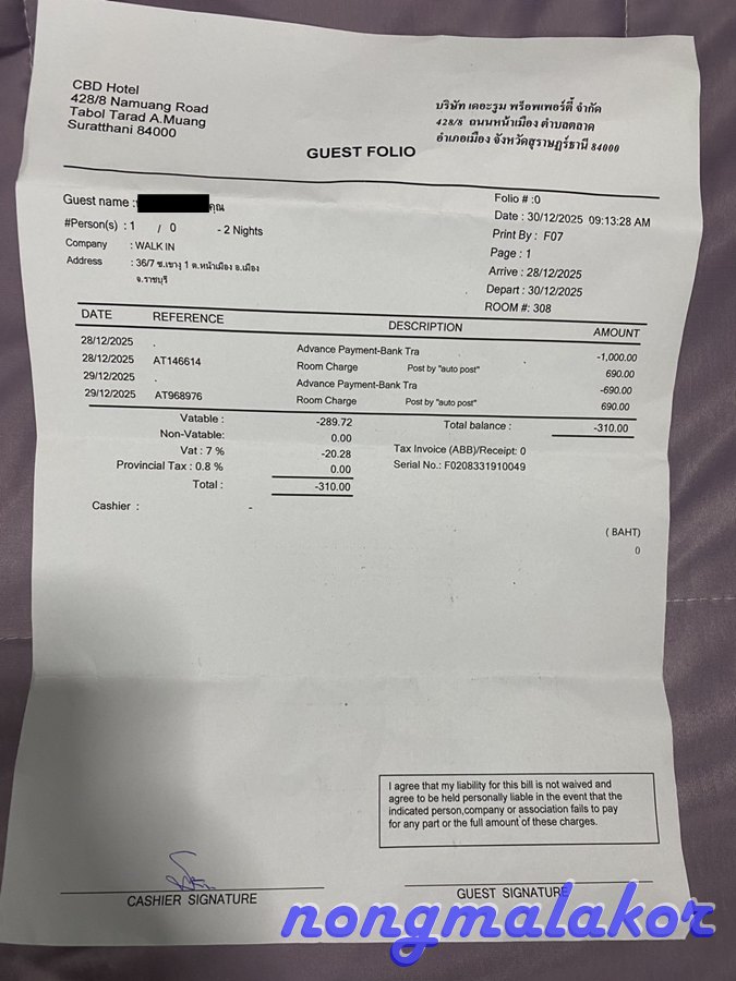 วันจันทร์ที่ 29 ธ.ค.68 -ค่าโรงแรม 1 คืน 690 บาท (ไม่มีอาหารเช้า)