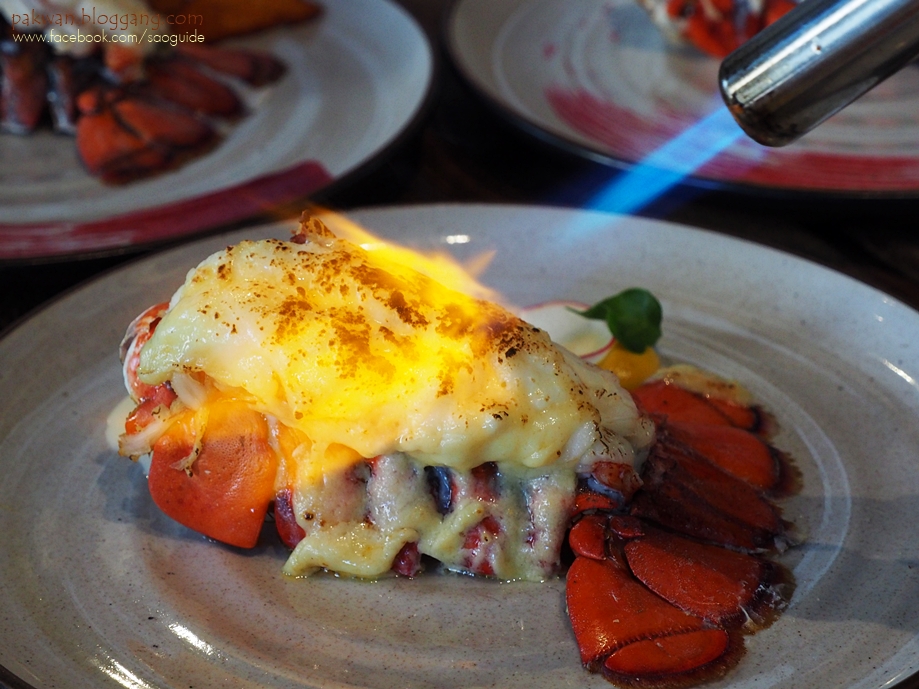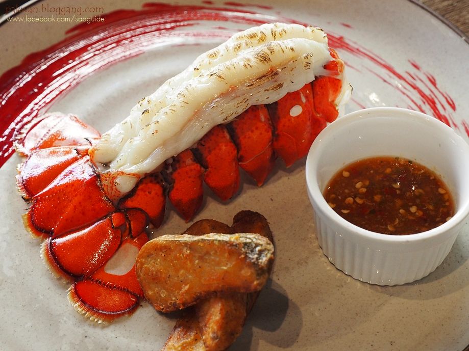 6. ร้านขอสงวนสิทธิ์ในการเปลี่ยนแปลงรายละเอียดเพิ่มเติมโดยไม่แจ้งให้ทราบล่วงหน้า กล่าวโดยสรุปแล้วก็คือ นอกจากโปรฯ เมนูพิเศษ (ขึ้นอยู่กับจำนวนคนที่มา) แล้ว ก็จะมีโปรฯ ล็อบสเตอร์หรือฟัวร์กราส์ไม่อั้น (แต่ต้องจองผ่านฮังกรี้ฮับ) และมีการจับคูปองให้กินฟรีทุกเดือนๆ ละครั้ง โดยการจับคูปองนี้จะจับในทุกๆ รอบๆ ละ 1 รางวัลค่ะ ซึ่งตอนเราไปกินเช็คอินโพสต์เฟสนี่ก็มีน้องที่เป็นกุ้งเลิฟเวอร์แชทมาถามเลยค่ะ เพราะนางอยากกินล็อบสเตอร์ไม่อั้น ก็อธิบายกันไปนี่น่าจะจองไปแล้วหละค่ะ เพราะโดยราคานี้ ถ้ากินได้อย่างนาง น่าจะคุ้ม ร้านบอกว่าที่เจอคือกินเยอะสุดคนเดียวคือ 20 ตัวค่ะ ซึ่งเราก็แบบ...เอิ่ม...กินเข้าไปได้ไงฟระนั่น  โดยล็อบสเตอร์ไม่ว่าจะกรณีกินไม่อั้น หรือเลือกรับกรณีไปสองคน ก็จะสามารถเลือกได้ว่าจะเป็นกริลล์เฉยๆ หรือจะเป็นแบบย่างชีสก็ได้นะคะ ถ้าเป็นแบบกริลล์ก็จะเสิร์ฟมาพร้อมน้ำจิ้มซีฟู้ดค่ะ แต่ตัวย่างชีสถ้าอยากได้น้ำจิ้มซีฟู้ดก็ไปเอาจากสเตชั่นหอยนางรมได้นะ เราว่า ตัวย่างชีสนี่สายชีสต้องโดนค่ะ ชีสดี หอม อร่อยเลยยยย