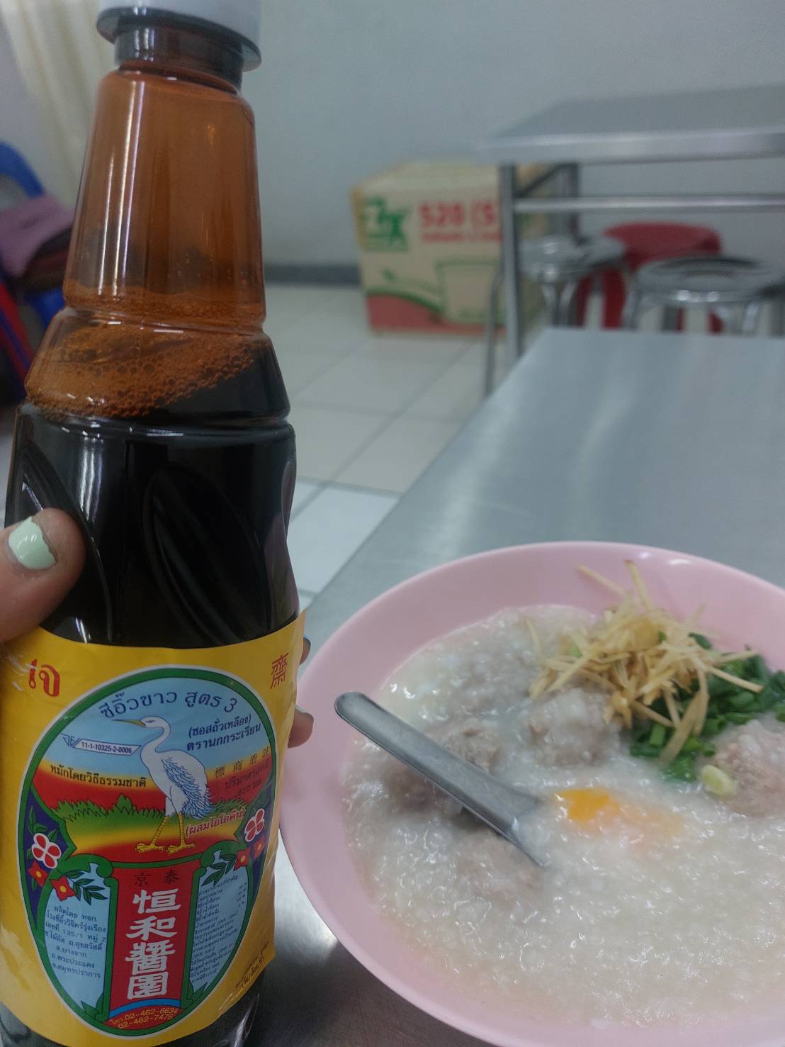 ซีอิ๊วนกกระเรียน จะฟินมาก คือโจ๊กจะอร่อยขึ้นไปอีก...