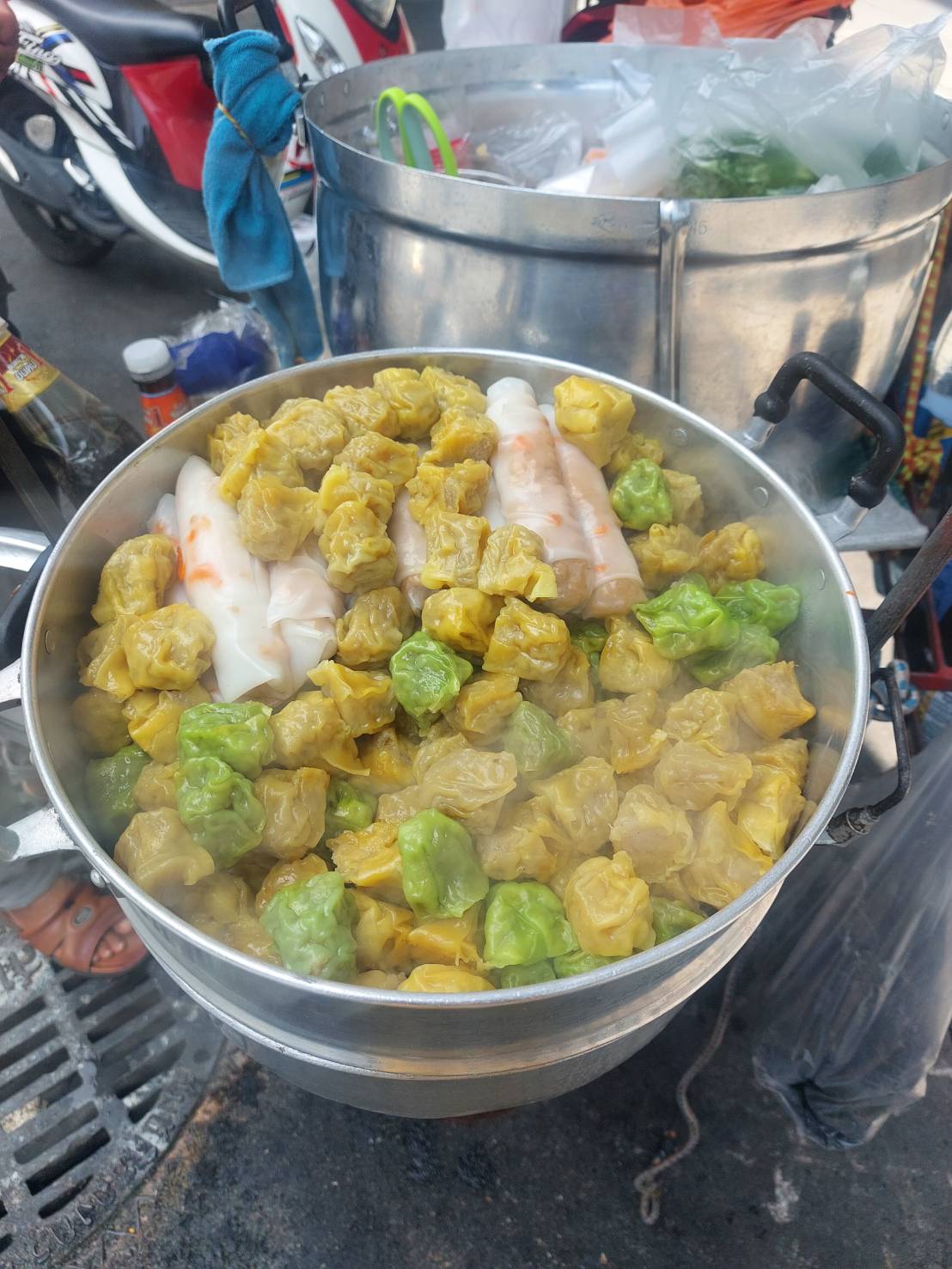 -ขนมจีบ ซึ่งต้องเป็นขนมจีบจากรถมอไซด์ ที่ในหม้อจะมีขายก๋วยเตี๊ยวหลอดด้วย เออ!กินขนมจีบโรยกากหมู โรยเกี๊ยวกรอบ แค่นี้ก็ฟินแล้ว...