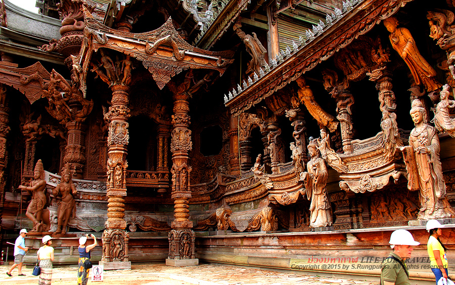 ปราสาทสัจธรรม เป็นปราสาทไม้ที่ใหญ่ที่สุดในประเทศไทย สร้างด้วยไม้ทั้งหมดโดยไม่ได้ใช้ตะปูเลยแม้แต่ชิ้นเดียว แต่ใช้การใส่สลักไม้แทน