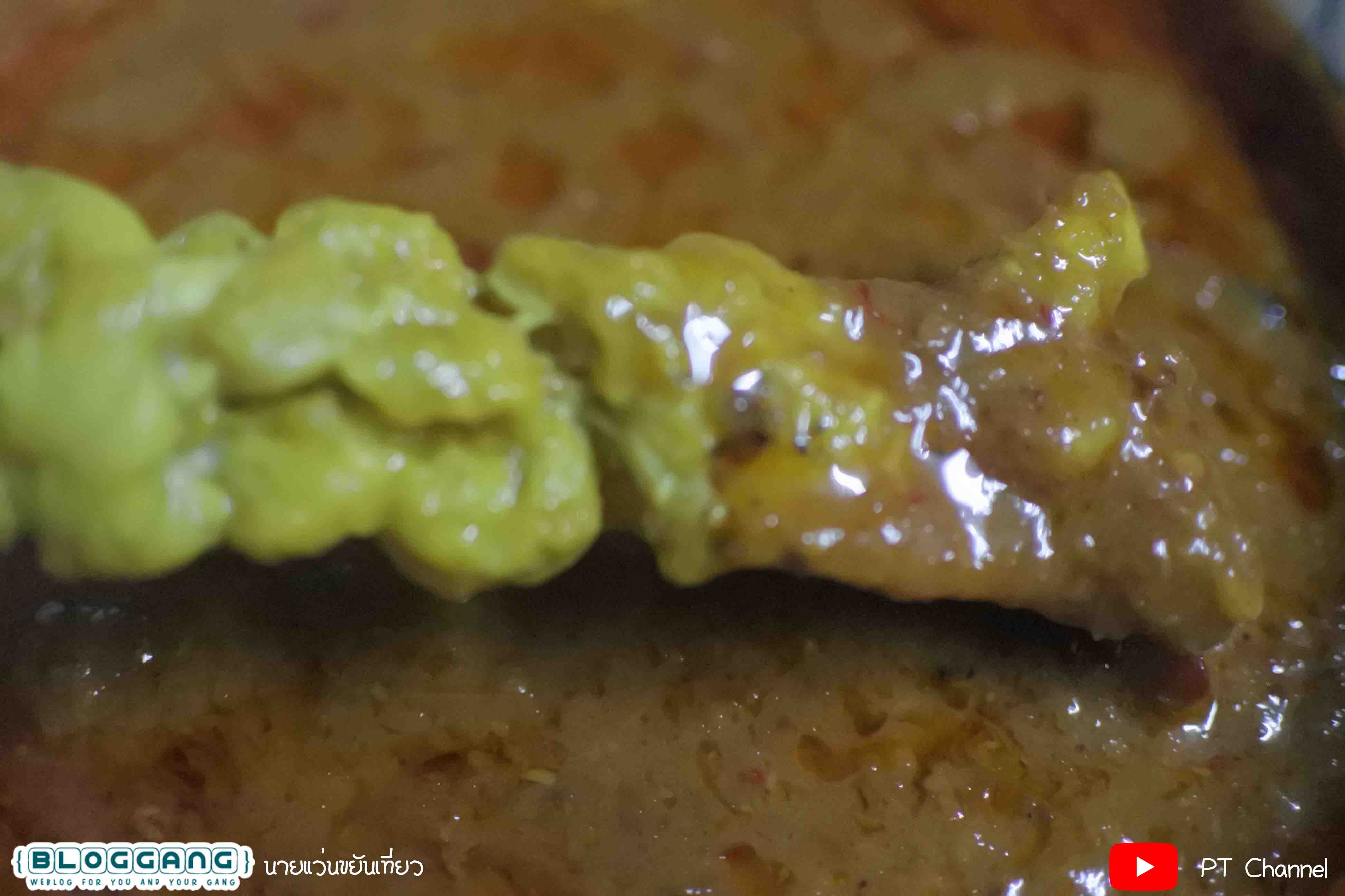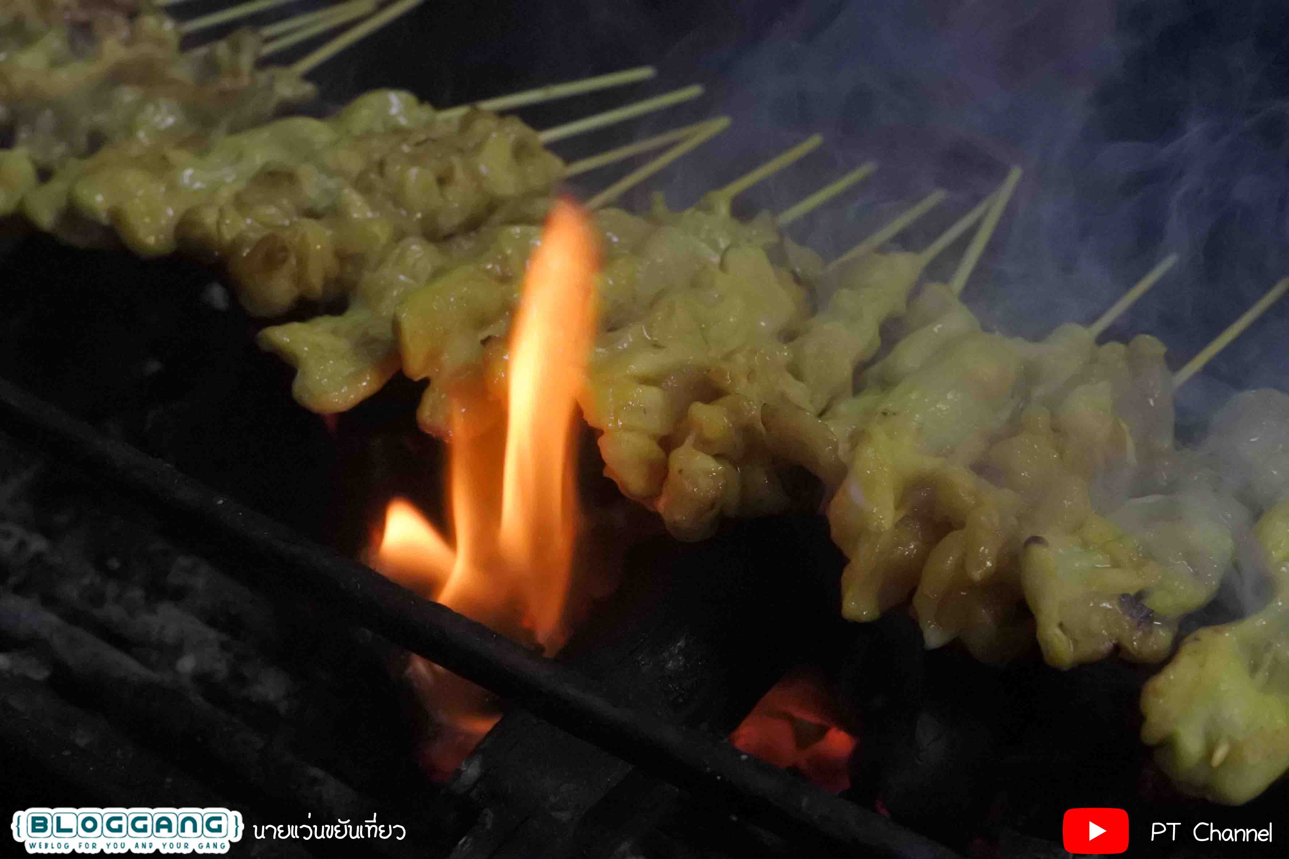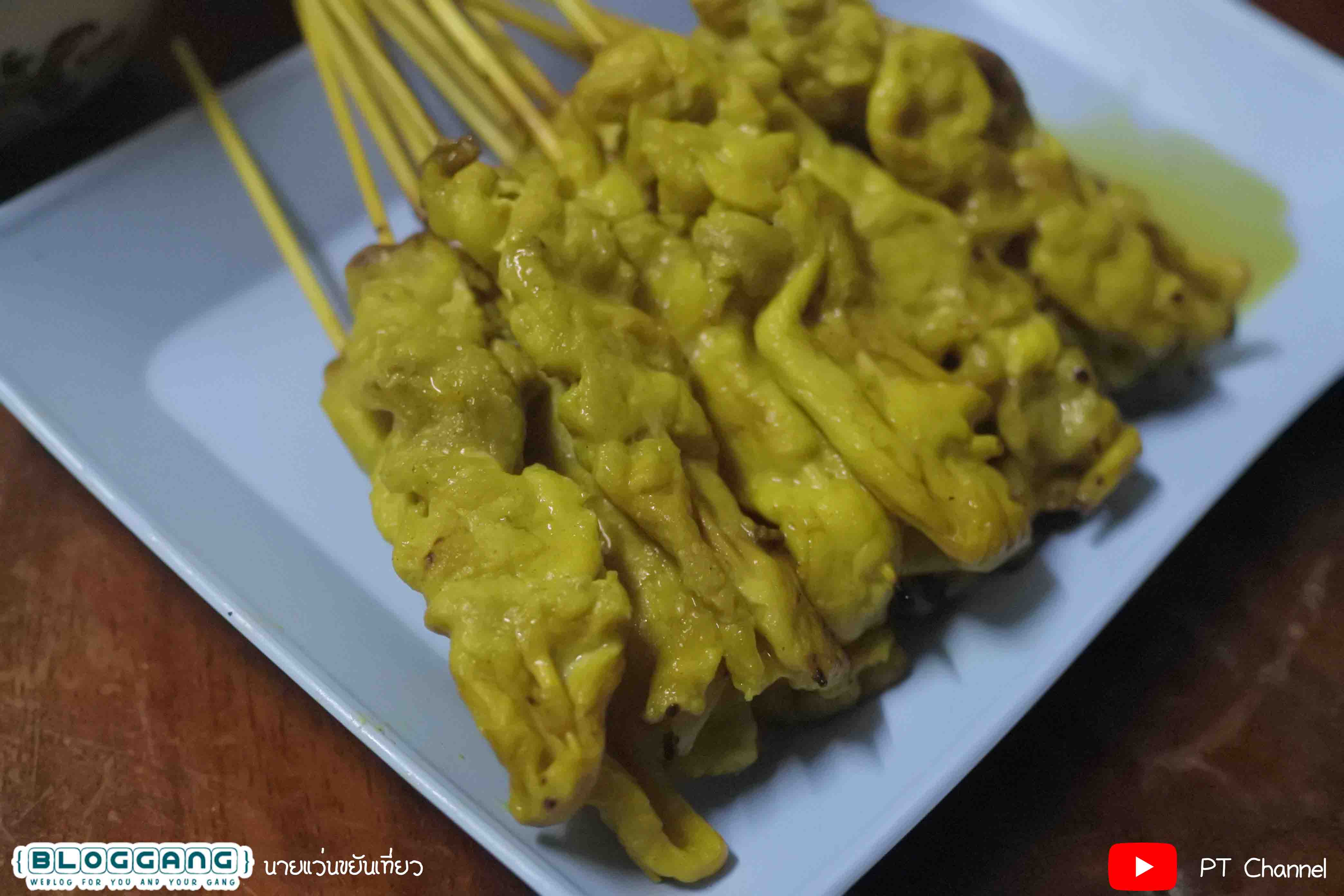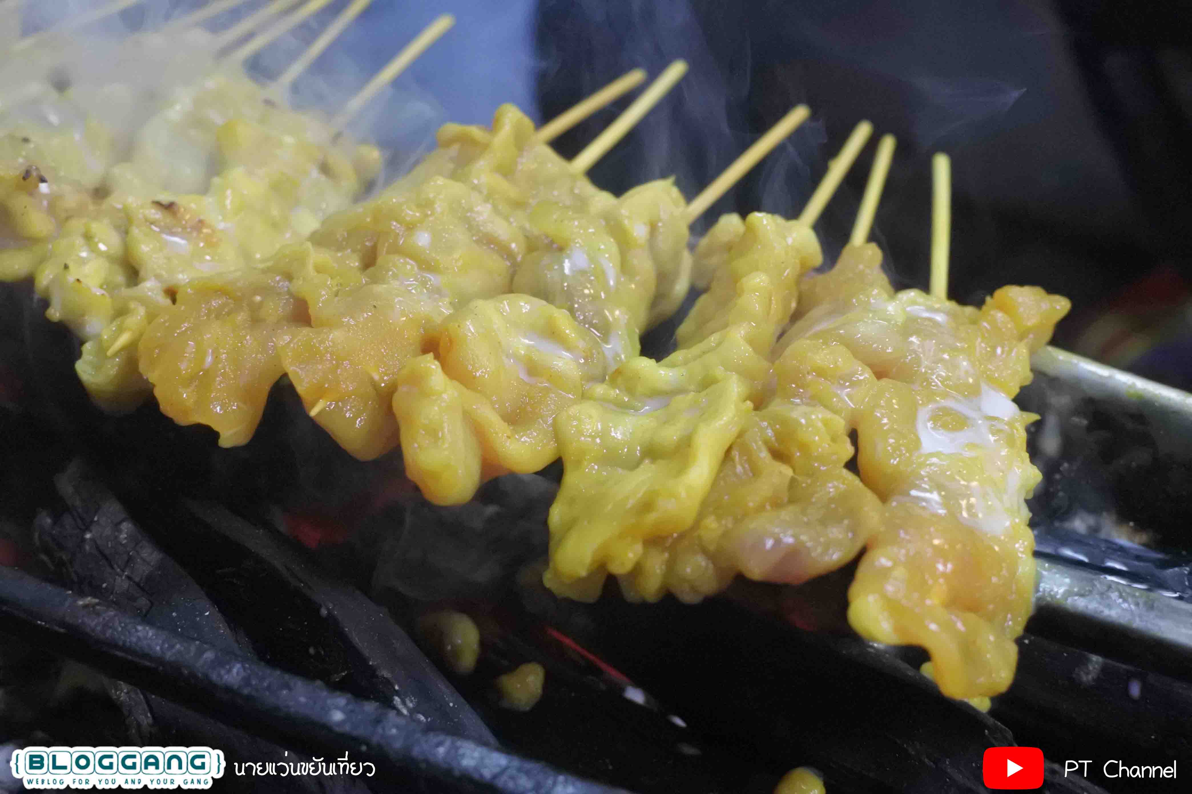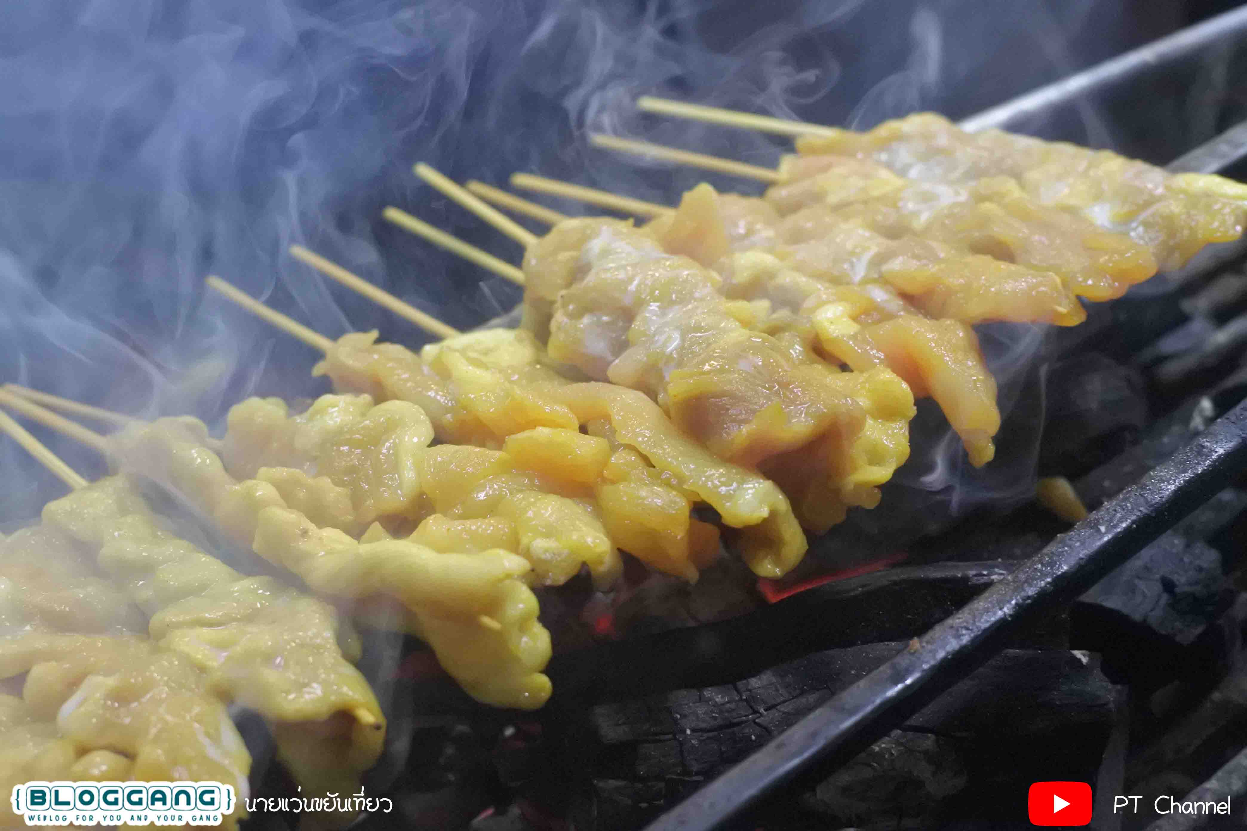 แต่ว่าอร่อยมากๆ เพราะมีกลื่นหอมของถ่าน และก็หมูชิ้นใหญ่และนิ่มากๆ