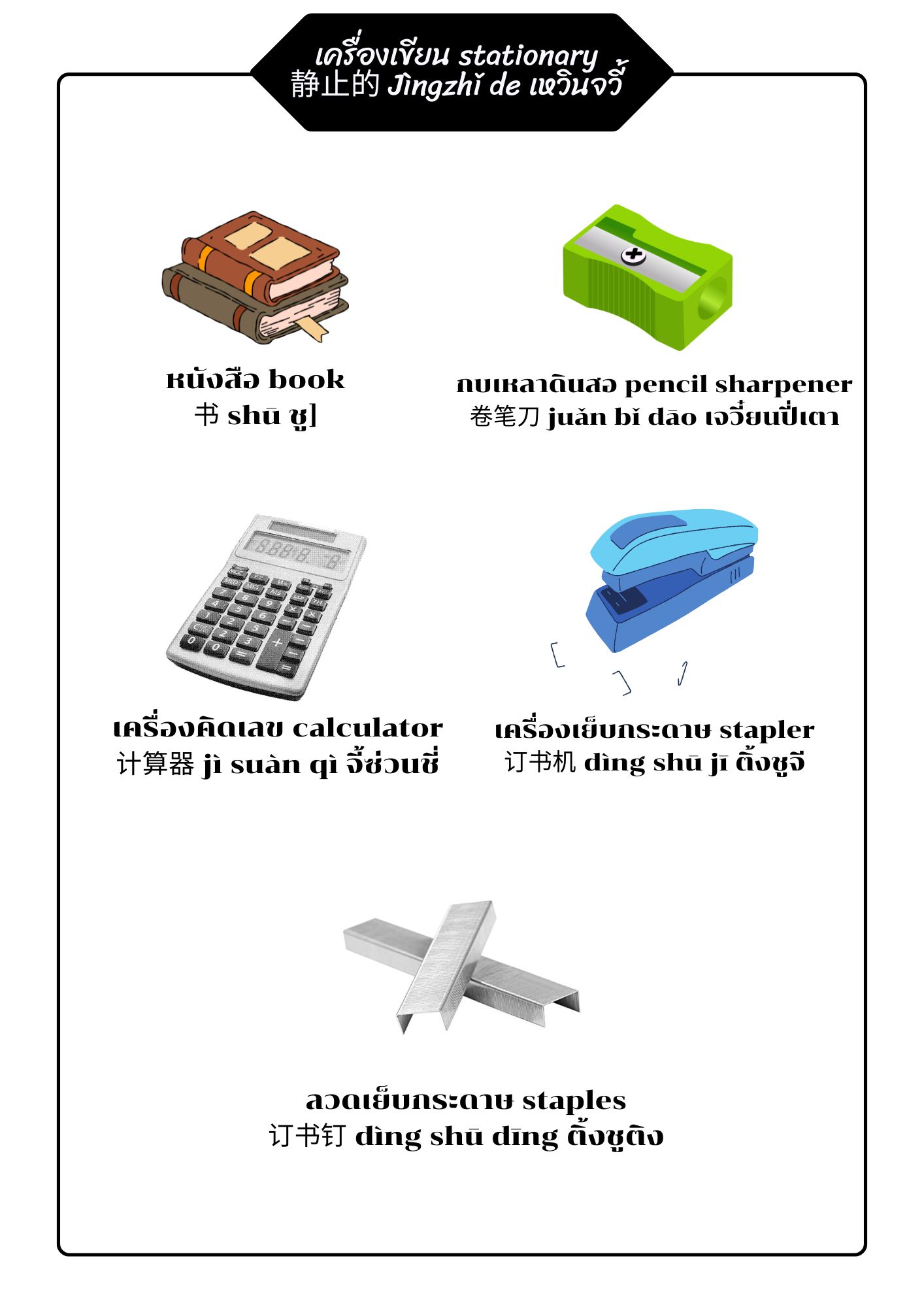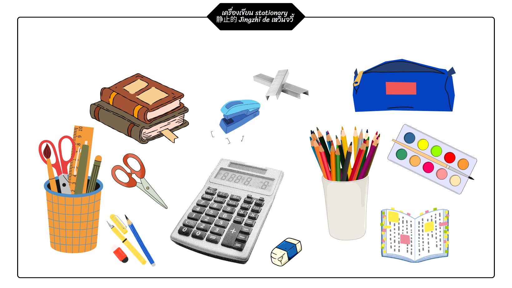 คำศัพท์ภาษาจีน เครื่องเขียน stationary 静止的 Jìngzhǐ de เหวินจวี้