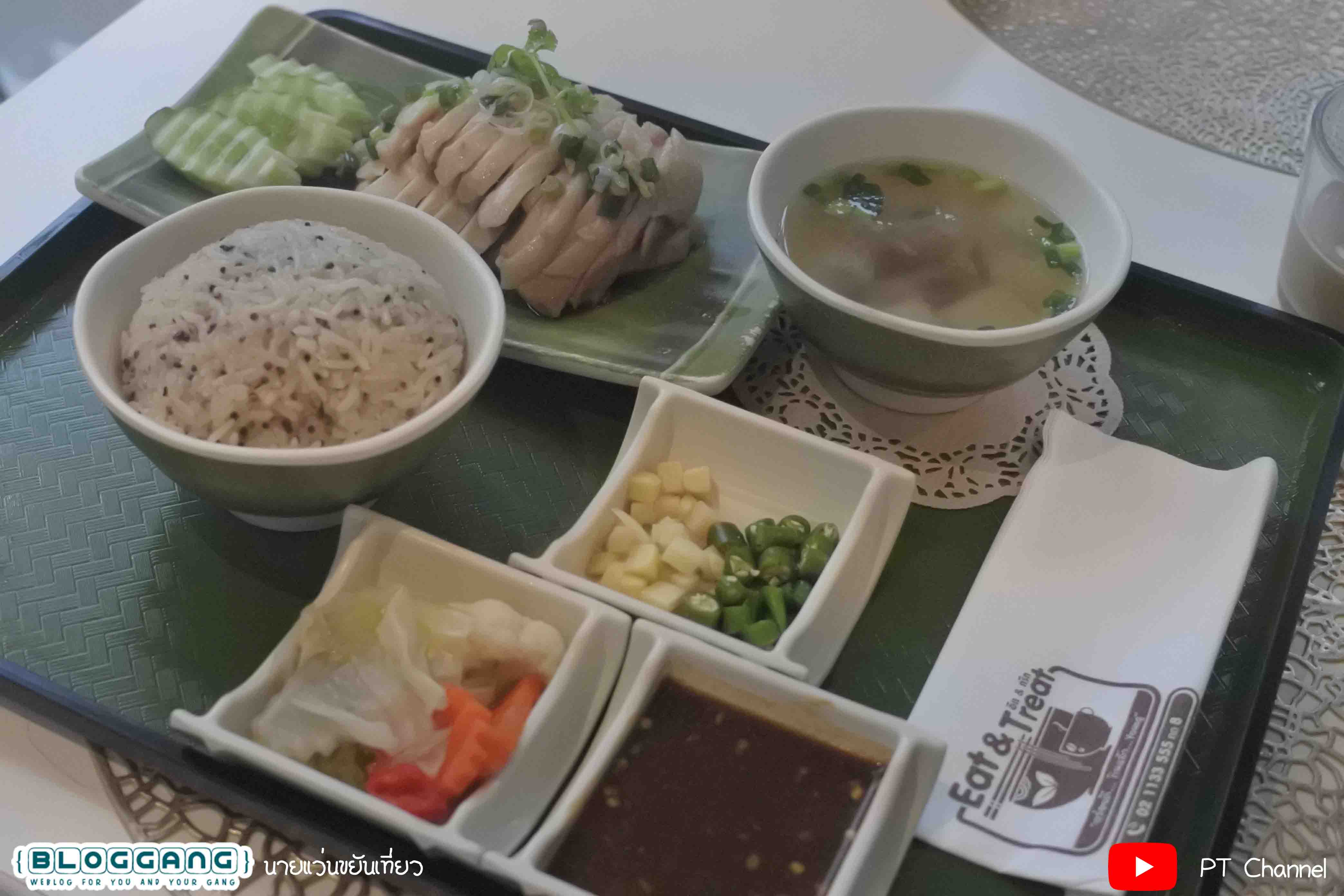 "ร้านEat&Treat" คือชุดข้าวมันไก่สิงคโปร์ บอกเลยว่าให้เยอะ ถ้าคนกินไม่เก่ง 2 คนกินได้สบายๆ