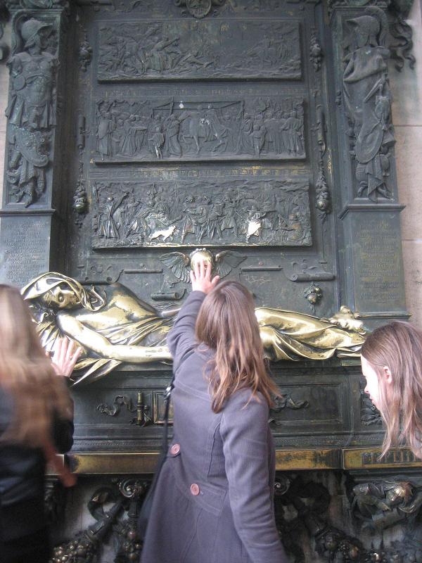 แล้วก็เดินเที่ยวไปเรื่อย ไปตามตรอกตามทางแหล่ะคะ ที่ฝูงชนเดินไปกันเยอะๆ ตามๆเค้าไป แล้วก็เจอสิ่งนี้คะก็เป็น landmark อีกอย่างคะ แต่เปิ้ลไม่ค่อยแน่ใจว่ายังงัยหรือเรียกว่าอะไร เงอะ โทษคะ ใครทราบช่วย comment หน่อยนะคะ อิอิ เท่าที่ทราบคือว่าถ้าใครไปลูบหรือจับรูปปั้นทองคำนี้ ก็จะได้กลับมาที่นี่อีก (ใช่ป่าวอะ) นั่นแหล่ะคะ อิอิ
