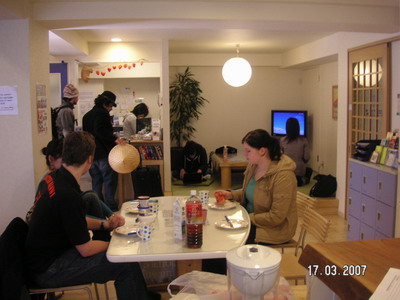 บรรยากาศใน guest house ค่ะ มี 4 ชั้น มีลิฟทืให้ด้วยนะค่ะ มีเคาเตอร์ทำอาหารได้ มีโซฟานั่งเล่น ใซนญี่ปุ่นให้ห้อยขาด้วย ห้องน้ำ ทันสมัยค่ะ แม้จะใช้รวมแต่หลายห้อง มีฝาชักโครกไฮเทค ล้าง & อุ่นก้นด้วย เที่ยบกะที่ kyoto ที่นี่สบายกว่าค่ะ รู้สึกจะเปิดเพิ่มที่ฟูจิ ด้วยนะค่ะ