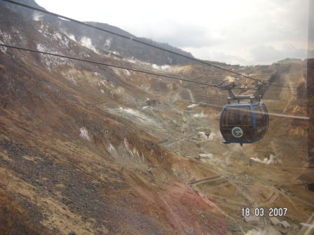 หลังจากดื่มด่ำกับศิลปะแล้ว ก็ไปนั่งรถรางต่อไปยัง สถานีกระเช้าเพื่อขึ้น Owakudani