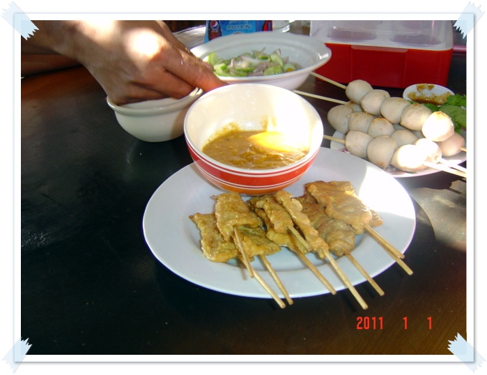 แวะกินก๋วยเตี๋ยวไข่ ร้านคุณยาย (จำชื่อผิดหรือเปล่าไม่รู้นะ) ระหว่างรอก็กิน ลูกชิ้น หมูสะเต๊ะ ลอดช่อง จนอิ่ม แต่ก๋วยเตี๋ยวไข่ ก็ยังไม่มาสักที ไหนๆก็รอแล้ว อยากจะลองชิม ว่ามันอร่อยแค่ไหน นานกี่นาทีก็ไม่รู้ แต่รู้ว่านานมาก จนก๋วยเตี๋ยวมา รสชาติอร่อยใช้ได้เลย นี่ถ้าหิวๆ คงจะอร่อยกว่านี้อีกเยอะเลย...