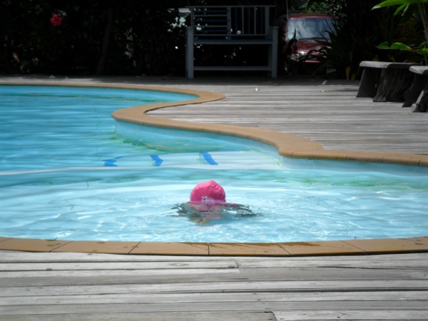 รบเร้าอยากจะลงเล่นน้ำ นี่มันเพิ่งจะบ่าย 2 มันร้อนนะลูก สุดท้ายไม่ไหวจะเคลียร์ เลยต้องยอมให้ลงเล่น